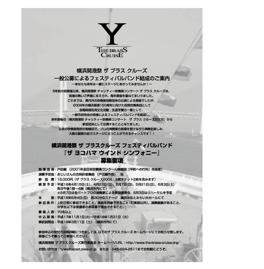 開催日時:2005年6月5日(日) 会場:横浜みなとみらい大ホール 開場時間:12:00 開演時間:12:40 終了いたしました 速報版:1 速報版:2